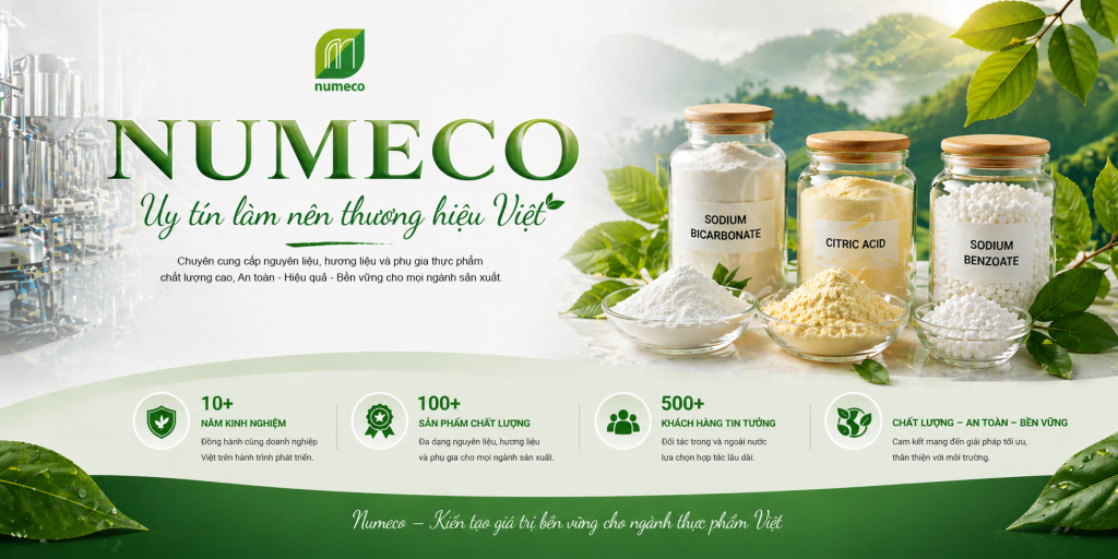Với 10 kinh nghiệm CÔNG TY TNHH NUMECO chuyên kinh doanh về nguyên liệu, bán thành phẩm, hương liệu và phụ gia cho các doanh nghiệp sản xuất thực phẩm, thực phẩm chức năng, dược phẩm, thức ăn chăn nuôi,… với mong muốn mang đến những giải pháp tối ưu cho nhà sản xuất, nâng cao được chất lượng sản phẩm, giảm chi phí quá trình sản xuất.